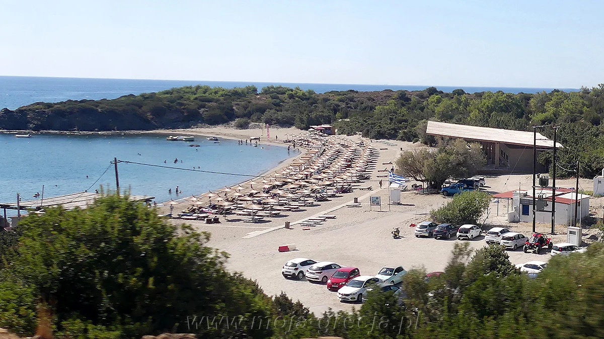 Jeśli komuś nie odpowiada żwirowo-kamienista plaża hotelowa, to około kilometra od hotelu, znajdzie piękną piaszczystą plażę: Glystera (gr. Paralia Glystera). Można na nią dotrzeć na dwa sposoby. Drogą asfaltową, bez chodnika, niezbyt ruchliwą (czasem przejeżdżają autokary) - w kierunku drogi głównej do Rodos. Przechodzi się mostem przez rzekę (suchą latem), obok Mini Marketu Stafilia i tuż przed skrzyżowaniem z drogą główną, trzeba skręcić ostro w prawo. Utwardzona droga, biegnąca lekko w dół, po kilku minutach dochodzi do parkingu przy plaży. Tędy z recepcji jest ok. 1200 m - 15 min. Druga możliwość, to przejście przez plażę hotelową - po dojściu do morza, udajemy się w lewo drewnianym pomostem/ścieżką w kierunku cypla. Kiedy na plaży zamiast kamyków będzie widać ciemnoszare, ostre skały (również w wodzie), trzeba odbić ścieżką w lewo, pod górę (jest drogowskaz: „Beach”). Po 5 minutach dochodzi się do plaży Glystera - od recepcji ok. 1000 m, również około 15 minut. Glystera to urocza, półokrągła, zatokowa, całkowicie piaszczysta plaża, z łagodnym zejściem do wody (również piaszczystym). Lazurowa woda otoczona jest tu zielonymi wzgórzami. Piasek jest naprawdę drobny, taki jak nad naszym Bałtykiem. Obuwie do wody jest praktycznie zbędne, ale jakieś klapki są konieczne - piasek jest zbyt gorący, żeby przejść boso. Dno opada bardzo powoli - dopiero około 50 metrów od brzegu straciłem grunt pod nogami. Woda w płytkiej zatoce jest wyraźnie cieplejsza, niż na plaży naszego hotelu. Miejsce to jest więc idealne dla rodzin z małymi dziećmi. Przy plaży znajduje się bardzo dużo płatnych parasoli i leżaków, a za nimi (przed drzewami) jest trochę miejsca, żeby rozłożyć się na własnych matach. Jednak ta część plaży nie jest już tak ładna, jak bliżej morza: pojedyncze duże kamienie, gałęzie, czasem plastikowe śmieci i niedopałki. Ładniejsza, niezagospodarowana część plaży jest przy cyplu oddzielającym ją od plaży hotelowej, ale tam już w wodzie pojawiają się skały. Na plaży działa wypożyczalnia łodzi i rowerów wodnych, bar z kanapkami i napojami oraz niewielka restauracja. Jedyne wady tego miejsca, poza koniecznością dojścia, to płatne leżaki i bar. Po pożarze, który nawiedził tę część Rodos niecały rok później, plaża wygląda tak. Lardos i Pefki ![]() Jadąc z hotelu główną drogą na północ, po kilku kilometrach docieramy do skrzyżowania z drogą odchodzącą w prawo, wręcz: wstecz. Prowadzi ona do Lindos. Najpierw jednak przebiega przez teren nazywany Lothiarika Beach - to nadmorska, turystyczna część miasteczka Lardos, z kilkoma wysokiej klasy hotelami i centrum sportów wodnych przy plaży. Jeśli jednak szukamy sklepów, fryzjera, apteki czy wypożyczalni samochodów, to albo musimy pojechać na północ do Lardos (od głównej drogi do stolicy odbijają dwie drogi do tego miasteczka), albo na wschód, w kierunku Lindos - do Pefki. Pefki (czasem pisane: Pefkos) to niewielka miejscowość turystyczna, z wieloma tawernami i apartamentami do wynajęcia. Miejsce to jest chętnie odwiedzane przez Brytyjczyków (a także Niemców i Skandynawów), więc oprócz greckich barów, znajdziemy tam kilka pubów. Często bywają tu też Rodyjczycy, nawet ze stolicy. Jest tu bowiem jedna z niewielu plaż na Rodos, którą pokrywa ciemnożółty delikatny piasek. Dodatkowo oznaczona jest błękitną flagą - gwarantującą czystość wody i piasku (oraz przyjazność środowisku i turystom). Nie brakuje tu też skalistych zatoczek, o lazurowej, niezbyt głębokiej wodzie - idealnych do nauki nurkowania. Lindos Lindos jest obok miasta Rodos, najczęściej odwiedzaną miejscowością na wyspie. Trudno powiedzieć czy jest to małe masteczko, czy tylko duża wioska. Obecnie żyje tu zaledwie 800 mieszkańców, ale w czasach starożytnych, liczba ta dochodziła do 17 tysięcy. Najbardziej znanym fragmentem Lindos jest Akropol - położony na wzgórzu (116 m) zespół zabytków, pochodzących z czasów od starożytności (IV w. p.n.e.) do średniowiecza (XIV/XV w.). Ze szczytu Akropolu rozpościera się piękny widok na Zatokę Lindos i Port Św. Pawła, leżące u podnóża wzgórza. Na zwiedzanie warto poświęcić co najmniej 2,5-3 godziny. Plus ew. trochę czasu na pobyt na plaży. Z hotelu do Lindos (12 km) można dotrzeć na kilka sposobów. Najtańszym jest autobus (2,80 € w jedną stronę), odjeżdżający z przystanku sprzed recepcji. W sezonie (1.06-30.09) kursuje co około 25-45 minut, aż do 23.00, a bilety kupuje się u kierowcy. Przejazd zajmuje około pół godziny. Innym sposobem jest rejs statkiem, odpływającym z plaży hotelowej codziennie o 10:00, a w pon., śro. i pią. dodatkowo o 16:45. W obie strony kosztuje to 15 €, a płynie się trochę ponad godzinę. Rejs powrotny jest o 14:45, co daje ponad 3h na pobyt w Lindos. Do Lindos można też dotrzeć wynajętym autem. W mieście obowiązuje całkowity zakaz ruchu pojazdów - auto należy więc pozostawić na jednym z licznych, przeważnie darmowych parkingów i wyruszyć na zwiedzanie pieszo. My zwiedzaliśmy Lindos na dwa sposoby - najpierw popłynęliśmy statkiem, zwiedzając Akropol i okolice. Kilka dni później pojechaliśmy tam wynajętym autem, aby zobaczyć Port Św. Pawła i wykąpać się na uroczo położonej plaży. Opis na następnej stronie.