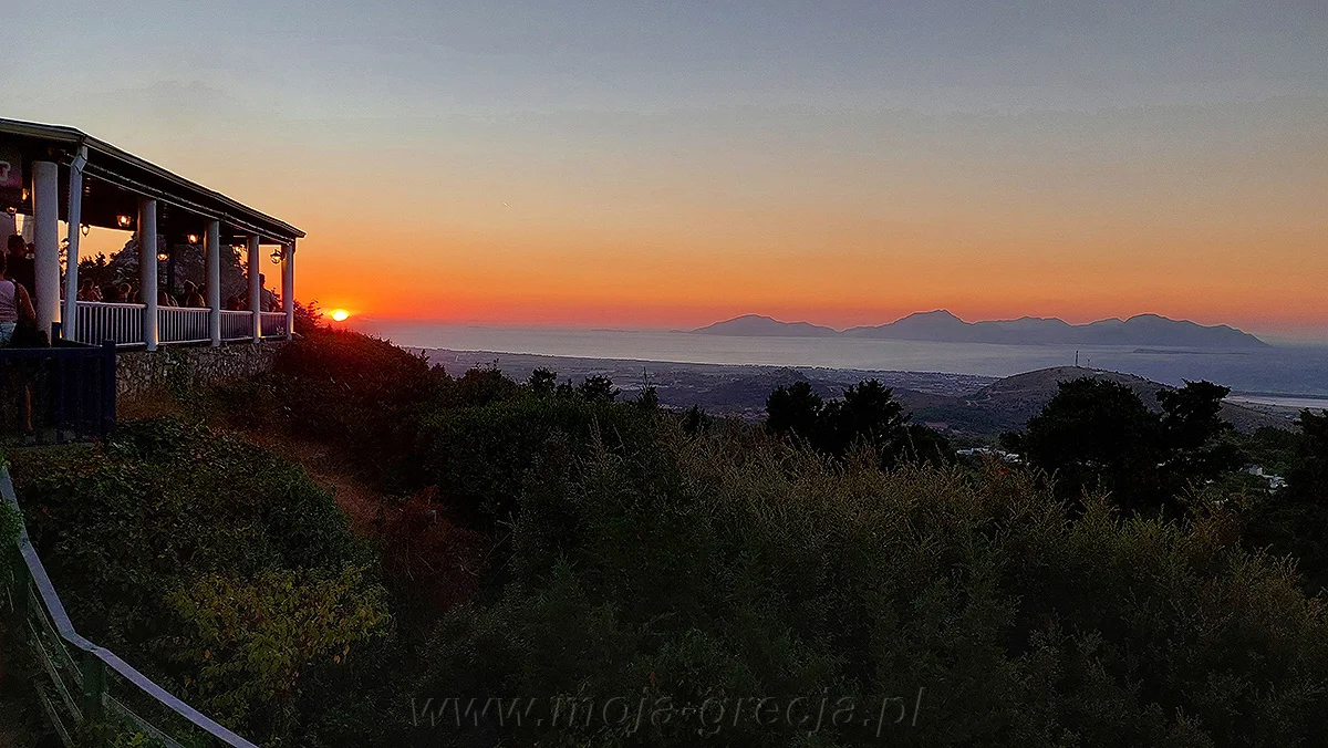 Wyspa Kos jest w większości prawie płaska, zwłaszcza w części środkowej i północnej. Ale jak każda większa wyspa grecka, ma też góry - na Kos zajmują południowo-wschodnią część, dochodząc do samego wybrzeża (ta część wyspy jest zbyt surowa, żeby powstały tam jakieś miejscowości). Najwyższym szczytem jest Dikeos – 843 m n.p.m. Na północnym zboczu tej góry, na wysokości pomiędzy 300 a 400 m n.p.m. leży kilka górskich wiosek, zwanych ogólnie Asfendiou. Najbardziej znaną z nich jest Zia, którą mieliśmy okazję przez chwilę zwiedzić podczas naszego poprzedniego pobytu na Kos. Bardzo nam się wówczas spodobało to miejsce - wyglądało dość naturalnie i można było tam zobaczyć, jak mieszkali tu ludzie przed nadejściem ery turystycznej i betonowych budowli. Wioska jest obecnie wyludniona - na stałe mieszka tu kilkanaście rodzin. Byliśmy wówczas przed południem - było cicho i dość pusto, a w niewielkich sklepikach i kramach przy drodze można było kupić nie tylko pamiątki, ale też lokalne produkty np. miód. Słyszeliśmy wtedy o pięknych zachodach słońca obserwowanych z tego miejsca - tym razem więc postanowiliśmy to sprawdzić. ![]() Kliknij aby zobaczyć powiększenie i dodatkowy opis...