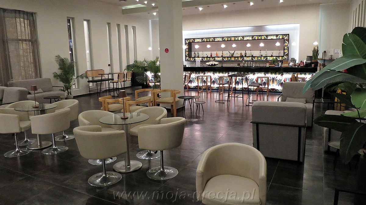 Do dyspozycji gości było pięć barów. Główny - przy restauracji, przy recepcji i przy głównym basenie - otwarte były do 24:00. Dwa pozostałe - przy wyjściu na plażę i w strefie „cichego basenu” - do 18:00. We wszystkich dostępne były różnorodne napoje bezalkoholowe, kawa, herbata, lokalne piwo i wino oraz alkohole lokalne i międzynarodowe, koktajle. Przy kilku basenach były też automaty samoobsługowe z zimną i gorącą wodą. Jedyne, czego brakowało nam w barach - to greckiej frappé. Nie było jej w menu w ramach All Inclusive, ani nawet za dodatkową opłatą, pomimo że sprzęt do jej przyrządzania był na wyposażeniu. Na szczęście w jednym z barów udało nam się kilka razy namówić uprzejmą barmankę, aby zrobiła nam frappé, gdy nikogo nie było w pobliżu. Bo jak tu spędzić gorący dzień w Grecji bez zimnej frappe?